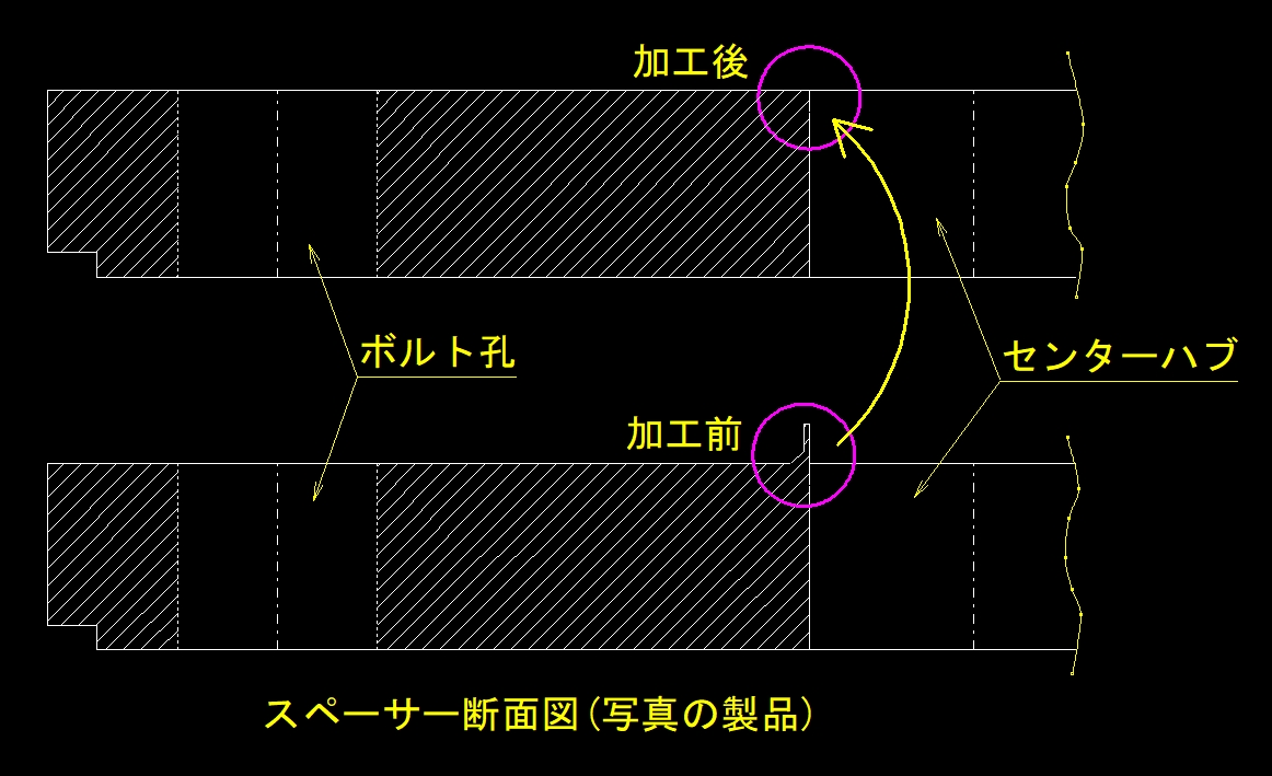 修正加工後のホイールスペーサー(ユーザー様、ご提供)